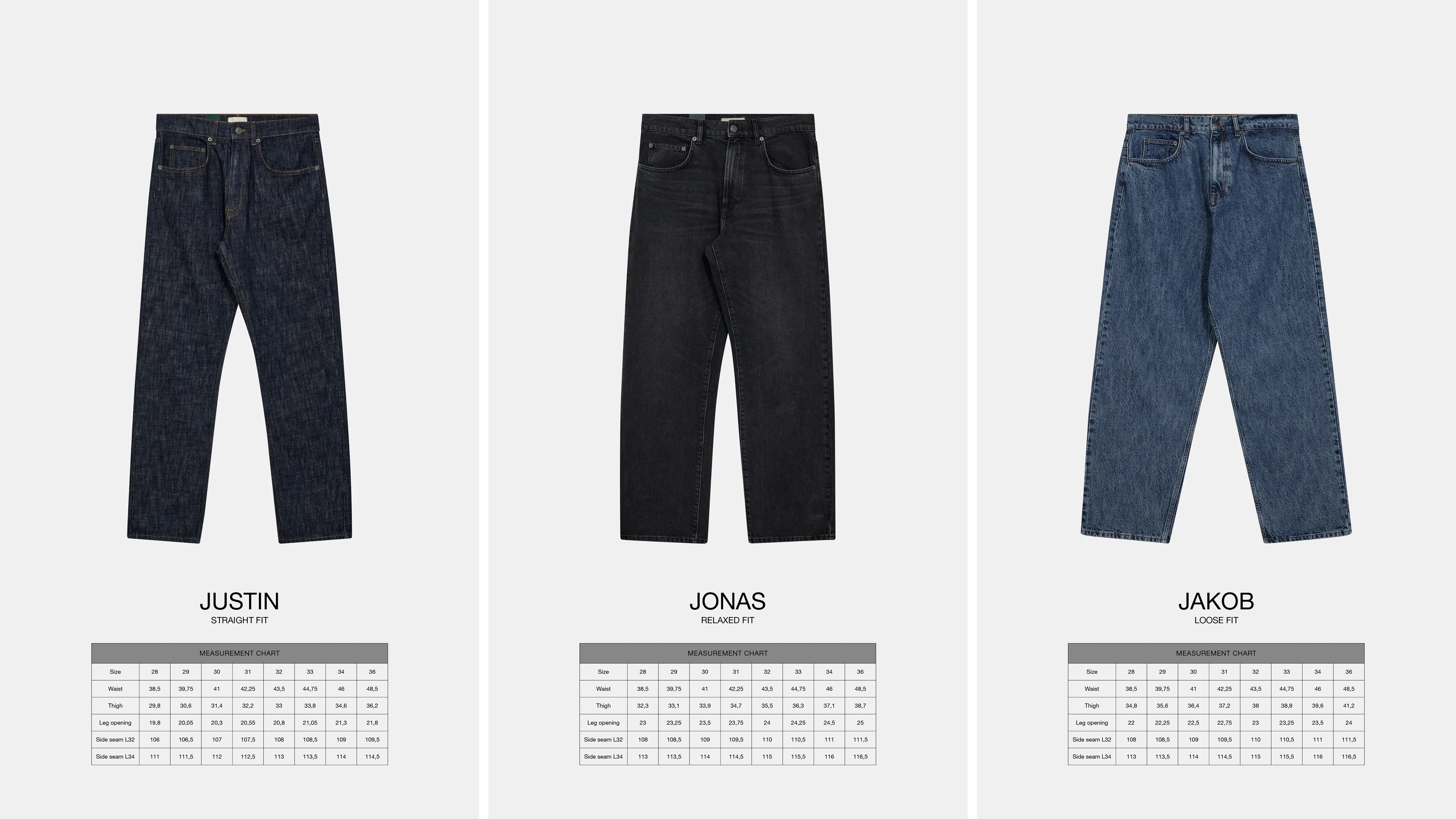 Available sizes