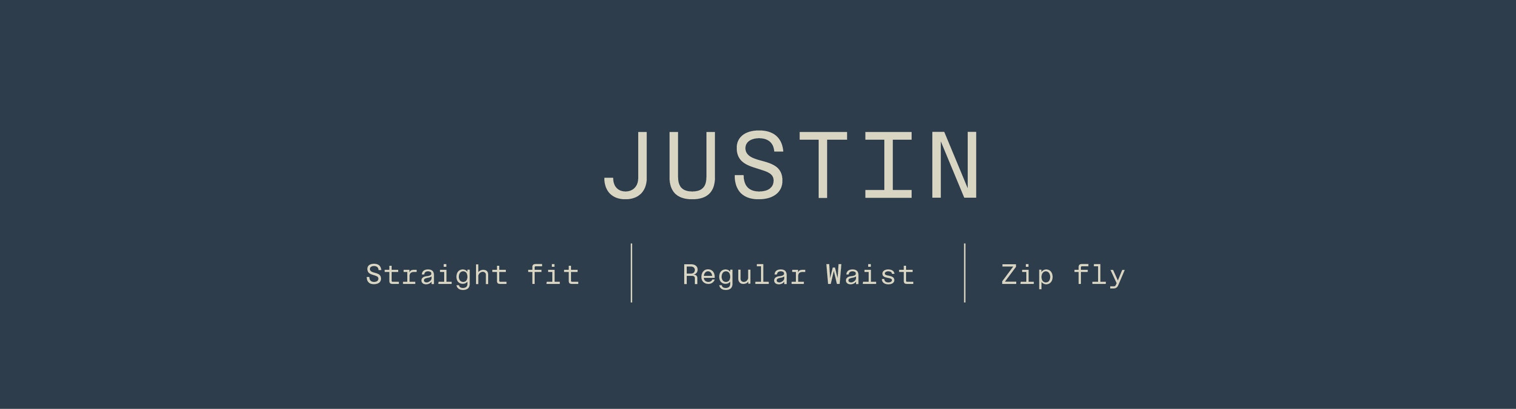 Justin is our timeless regular fit β a straight leg with a clean silhouette. Comfortable through the thigh and leg, itβs built for everyday wear. A no-fuss essential that works with everything in your wardrobe.